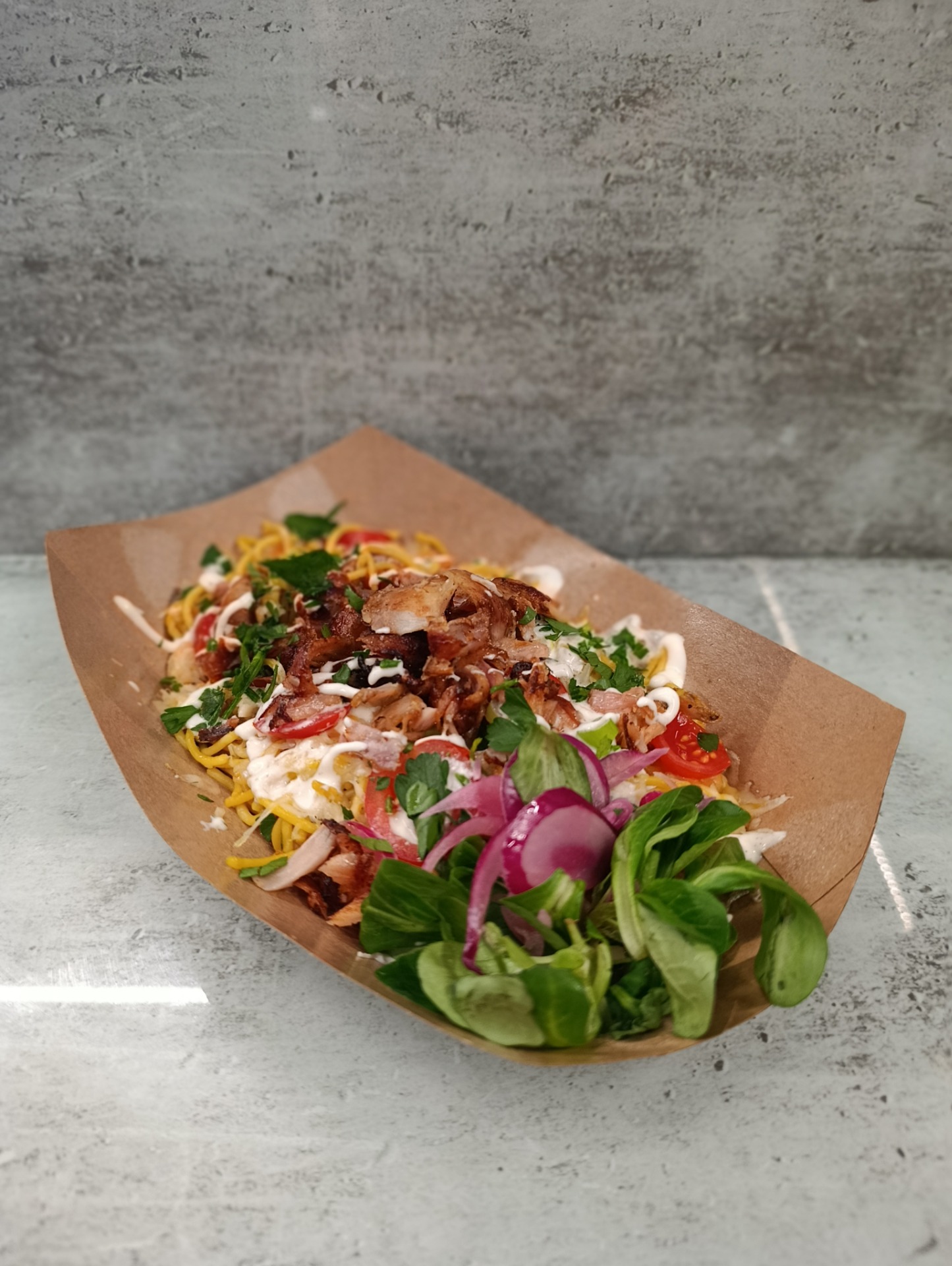 PLNĚNÁ BRAMBOROVÁ PLACKA TRHANÝM MASE NEBO GYROSEM